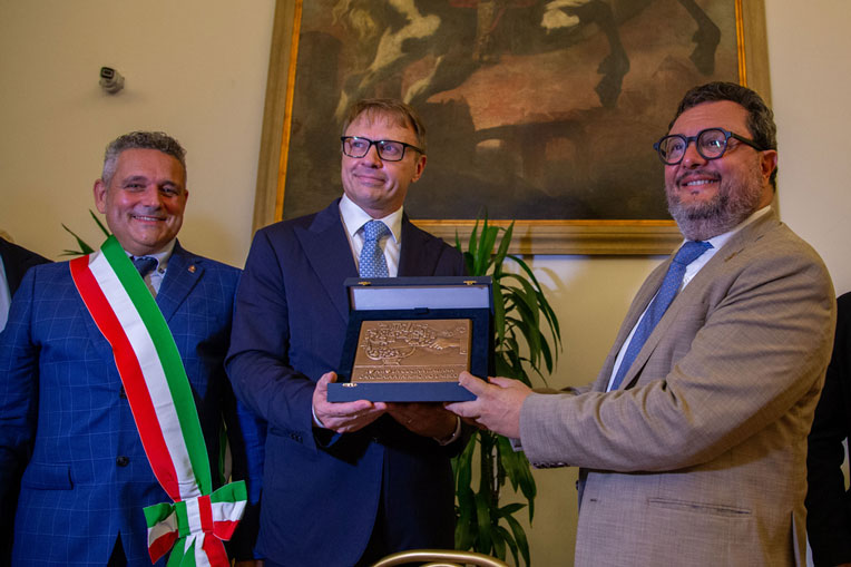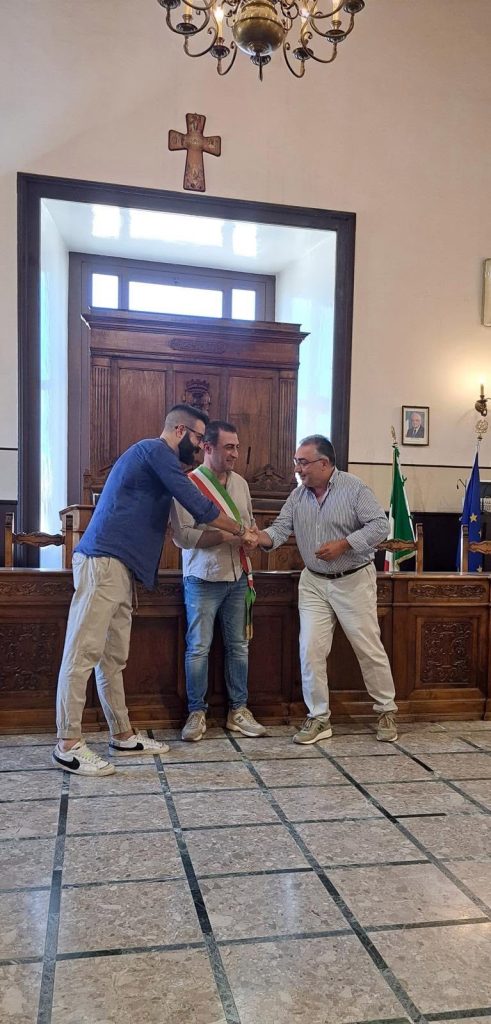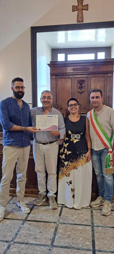 Il Presidente della Vitis in Vulture, Giuseppe Avigliano, è stato accolto presso il Comune di Lavello dal Vice Sindaco Alessandro Colonna e dall’Assessore all’Agricoltura Pietro Mangino, ai quali ha consegnato l’attestato conseguito ai premi ottenuti durante il concorso.